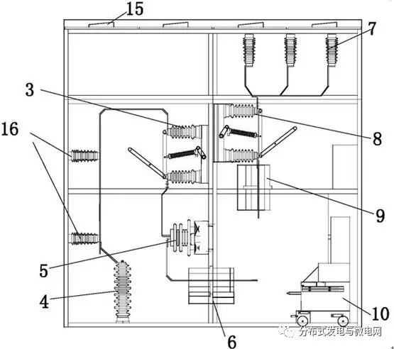 主柜體的上部空間設有復合絕緣子,下部空間設有智能斷路器;復合絕緣子通過第二隔離開關與第二復合絕緣套連接;首先隔離開關和第二隔離開關分別與母線套管連接。
